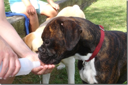Junto con Ari decidimos hacer los tres un picnic perruno allí mismo. Las chuches estaban riquísimas y no nos separamos de los bipes hasta que las acabamos.